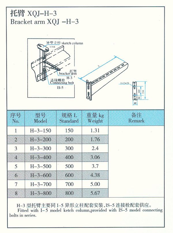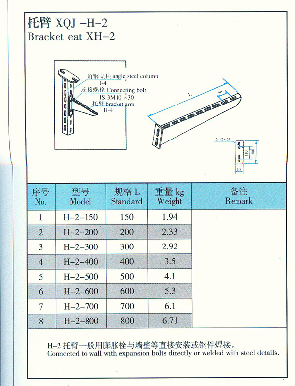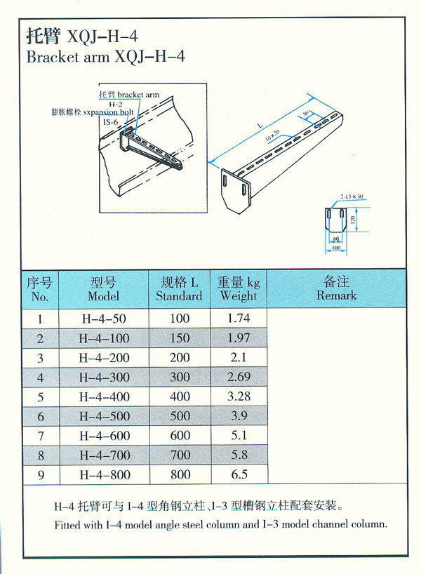 我公司生产的托臂可满足不同环境条件(工艺管道架上、楼板下、墙壁上、电缆沟内)安装成不同形式(悬吊式、直立式、侧壁式、单边、多边和多层)等的需要。电缆桥架如需多层重载荷吊装时,要尽量采取双边敷设、避免偏载过大。托臂支架部分其表面处理有电镀锌、热度锌、喷漆、喷塑四种。